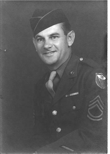 of his insignia, showing the rank of Tech Sergeant , higher than earlier